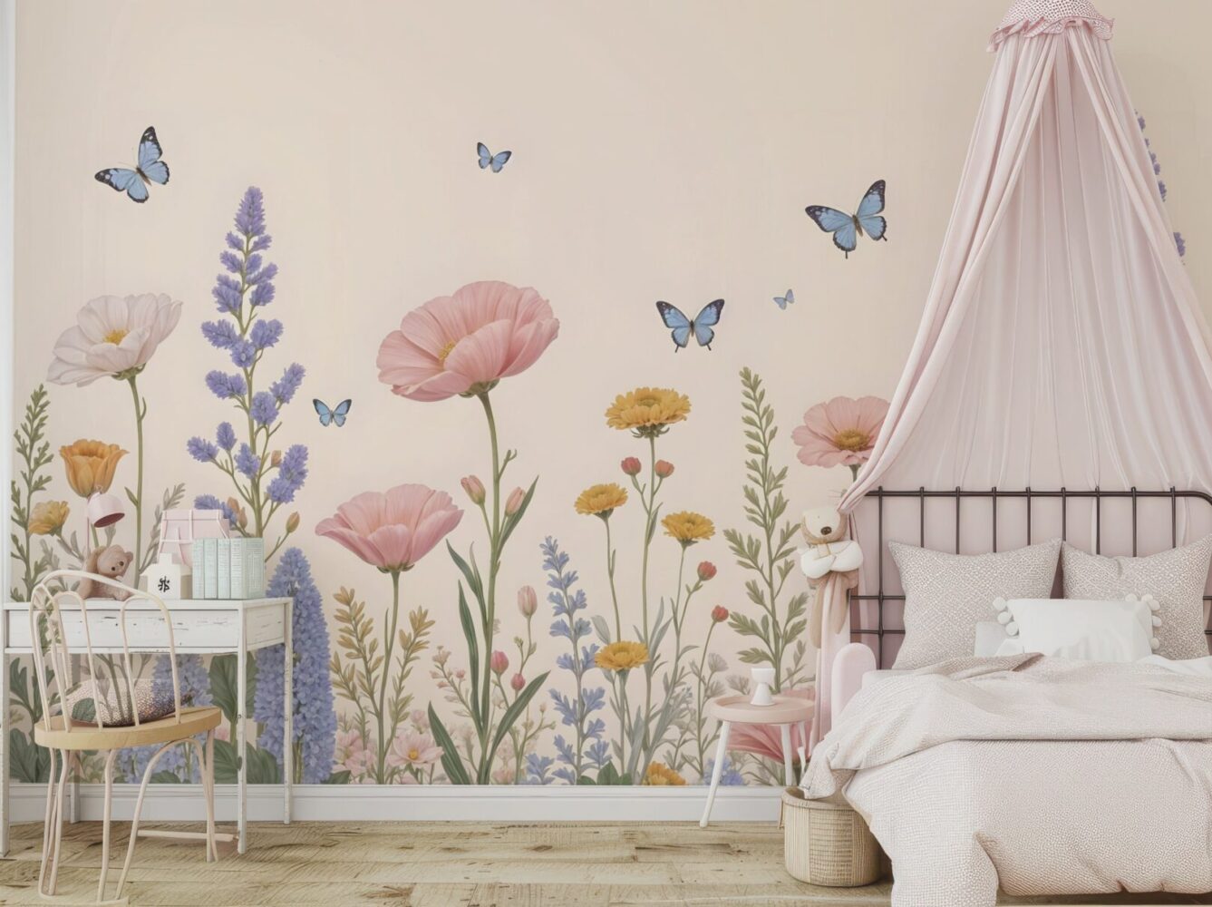 Agrega un toque único a tu hogar con FlowerGarden-021. Ya sea que desees crear un ambiente relajante en tu sala de estar o darle vida a la habitación de tus hijos, este mural será el complemento perfecto. Inspírate y visualízate a ti mismo y a tu familia disfrutando de la belleza y la magia que esta obra de arte aportará a tu hogar.